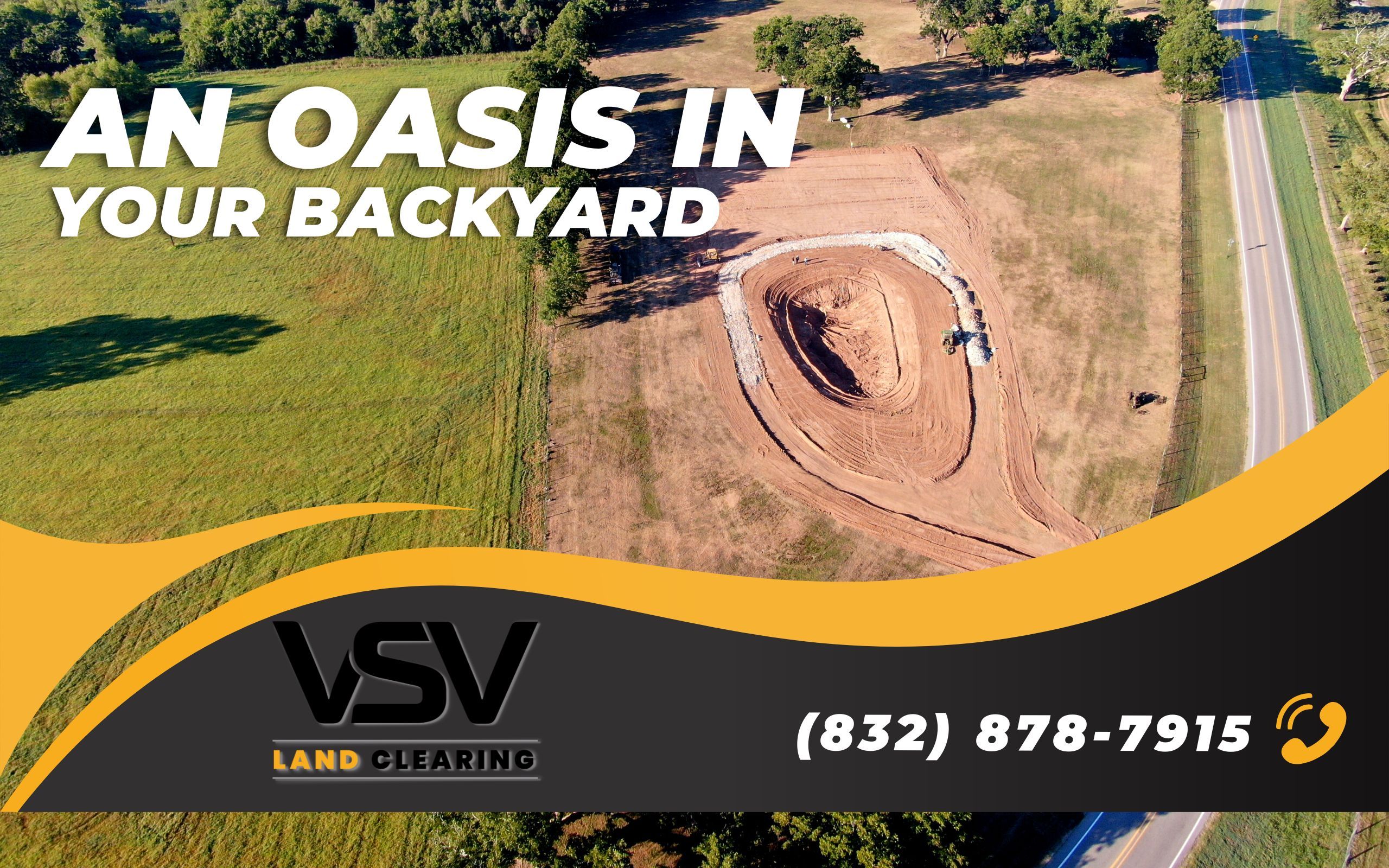 Ready to Create Your Backyard Oasis? Call VSV Land Clearing Today! For expert assistance in pond construction that balances aesthetics, functionality, and environmental sustainability, call VSV Land Clearing at (832) 878-7915. Let us help you bring your backyard oasis to life with professional expertise and dedication to environmental stewardship.