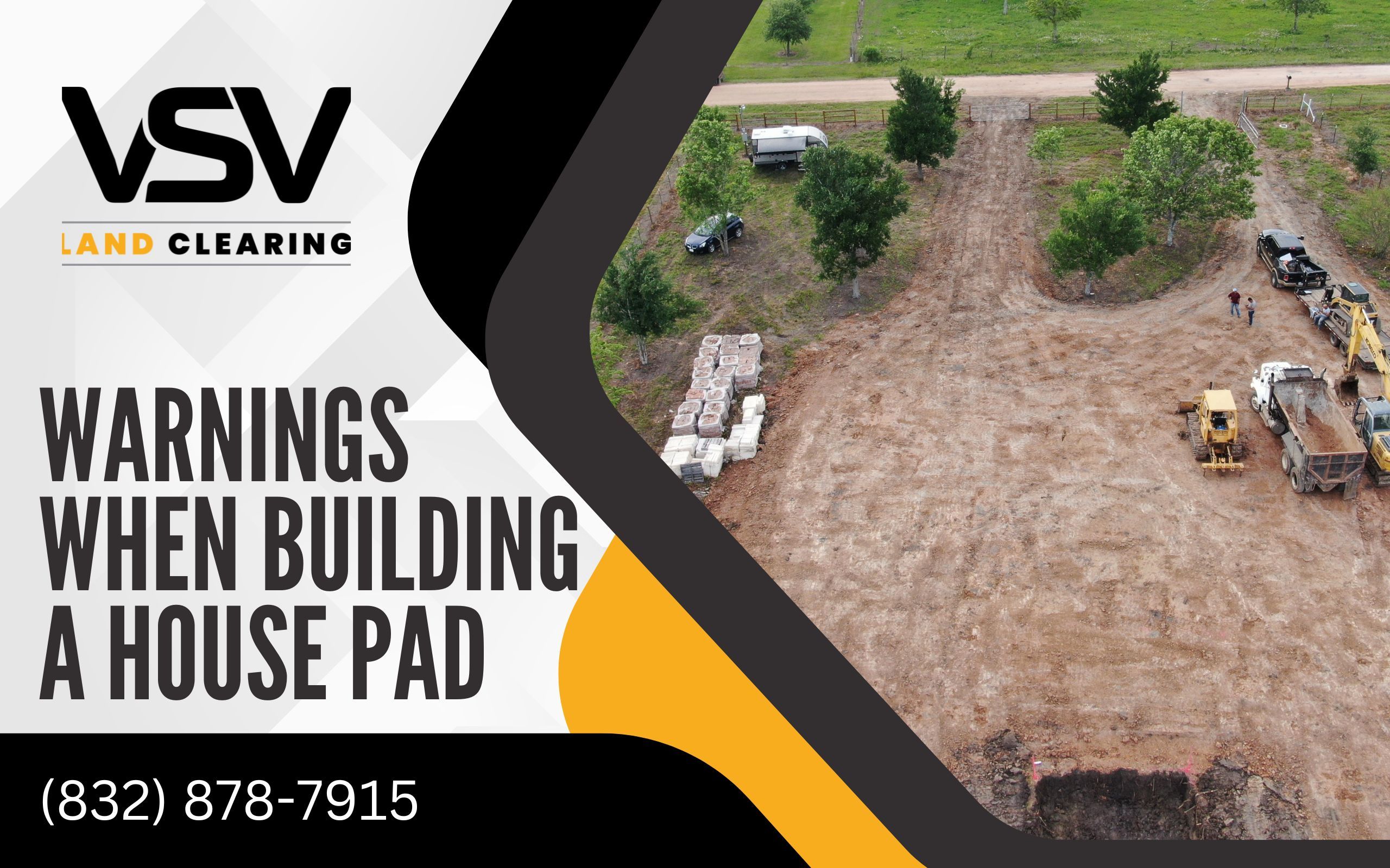 Contact VSV Land Clearing for Expert House Pad Construction, avoid the common pitfalls of house pad construction by partnering with professionals. VSV Land Clearing is here to help. Call us at (832) 878-7915 for expert consultation and services. Our team specializes in house pad construction, ensuring your foundation is built with precision and care. Don’t compromise on the foundation of your future home; ensure it’s done right with VSV Land Clearing.