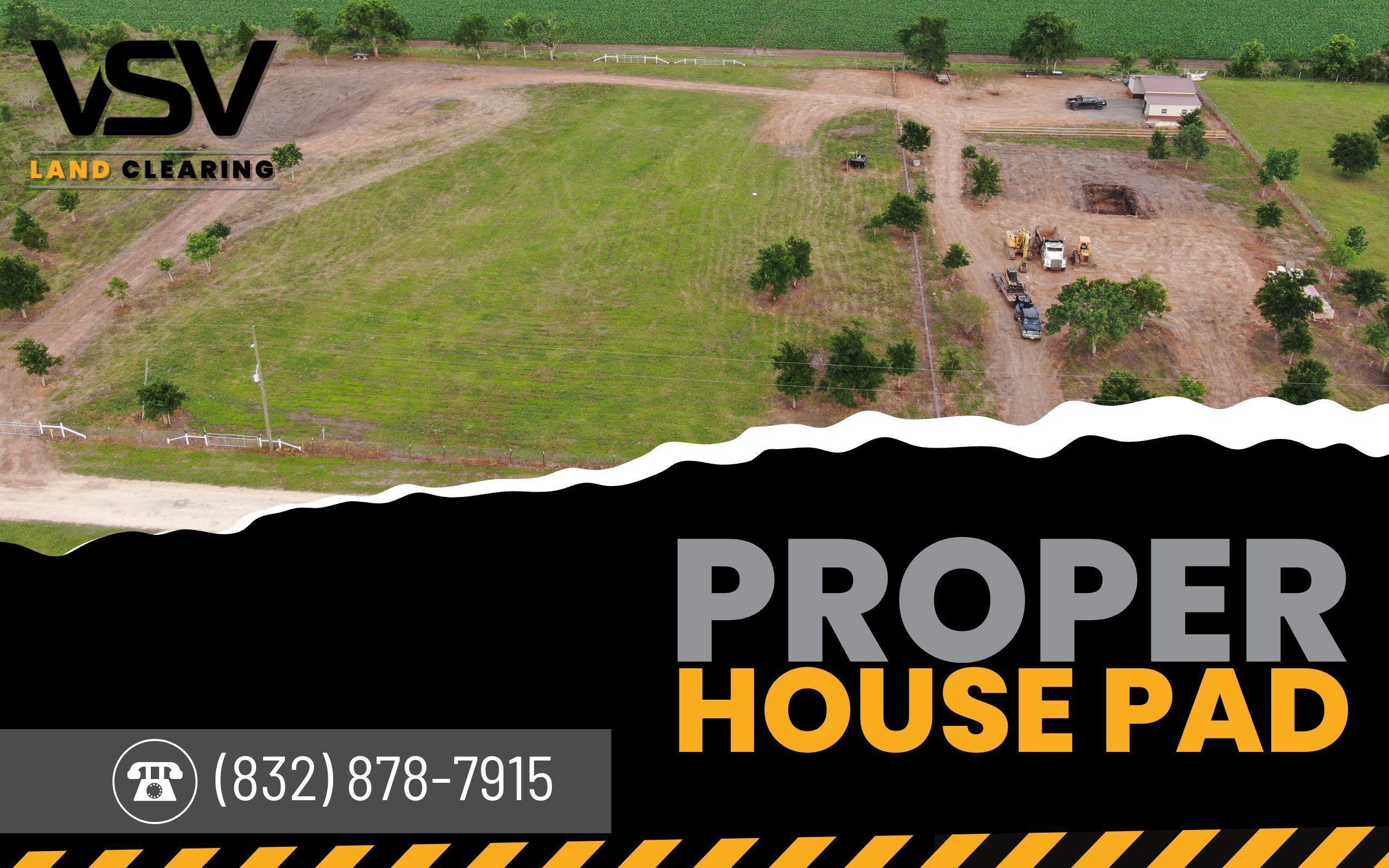 Need Expert Guidance for Your House Pad? Contact VSV Land Clearing! For professional assistance in selecting and preparing the ideal house pad for your construction project, contact VSV Land Clearing at (832) 878-7915. Our experienced team specializes in land preparation services, ensuring a solid foundation for your project's success. Let us help you build with confidence and longevity in mind.