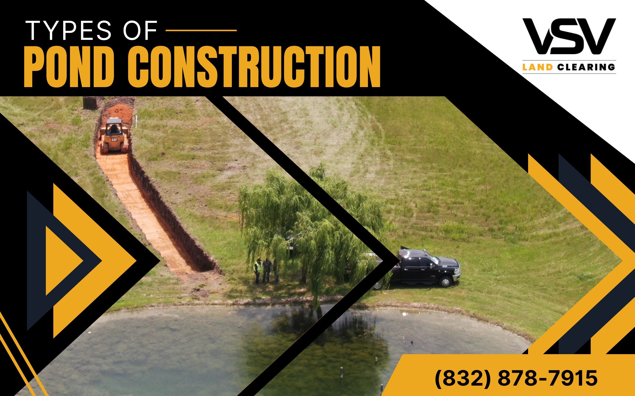 Ready to add a stunning pond to your property? Contact our team of experts in cleaning, construction, and land renovation to discuss which pond construction best suits your landscape. Let us help you create a beautiful and functional water feature that complements your outdoor space. Call VSV Land Clearing today at (832) 878-7915 to start planning your ideal pond!