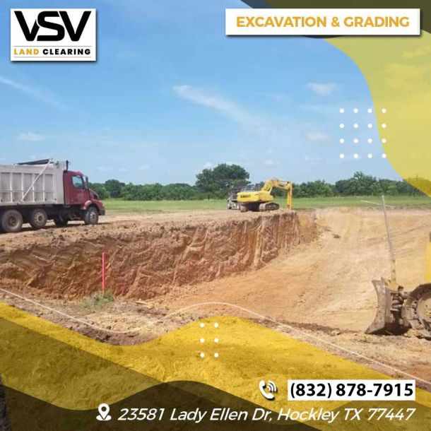 Shape your land to perfection with our excavation and grading services in Hockley, TX, providing precise land shaping for construction readiness, drainage improvement, and aesthetic appeal.